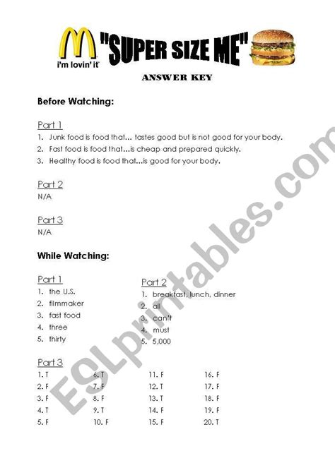 Download SUPER SIZE ME WORKSHEET ANSWER KEY Audio CD